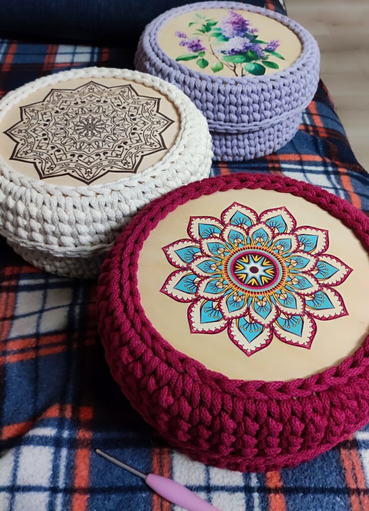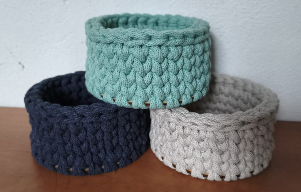 Ručně háčkované košíky na drobnosti jako originální dekorace do každého interiéru. Vhodné jako osobní originální dárek pro maminky, babičky, kamarádky nebo paní učitelky 🙂